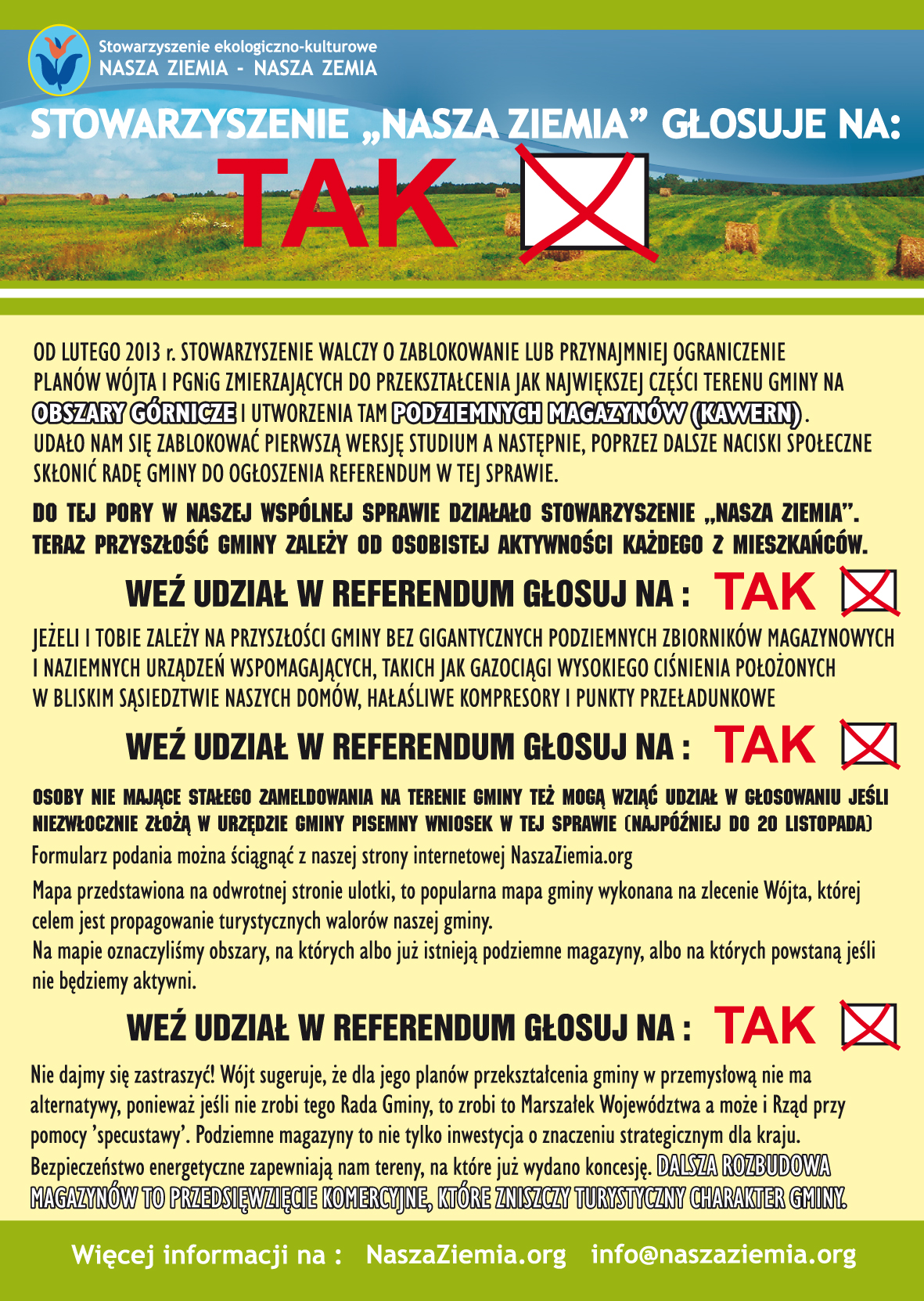 Stowarzyszenie Nasza Ziemia głosuje na TAK
